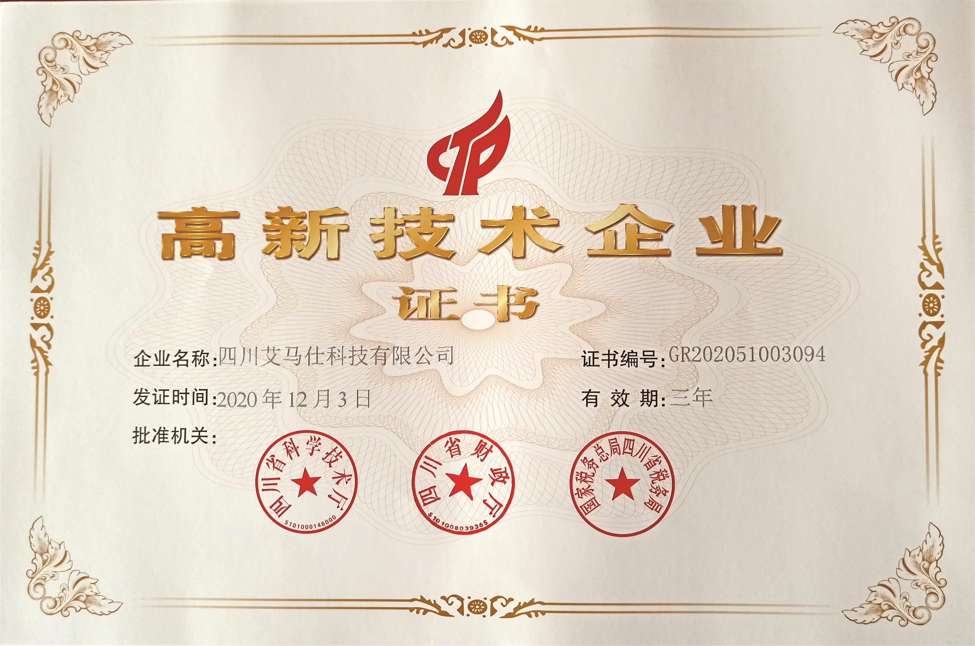 艾马仕公司第三次获得高新技术企业